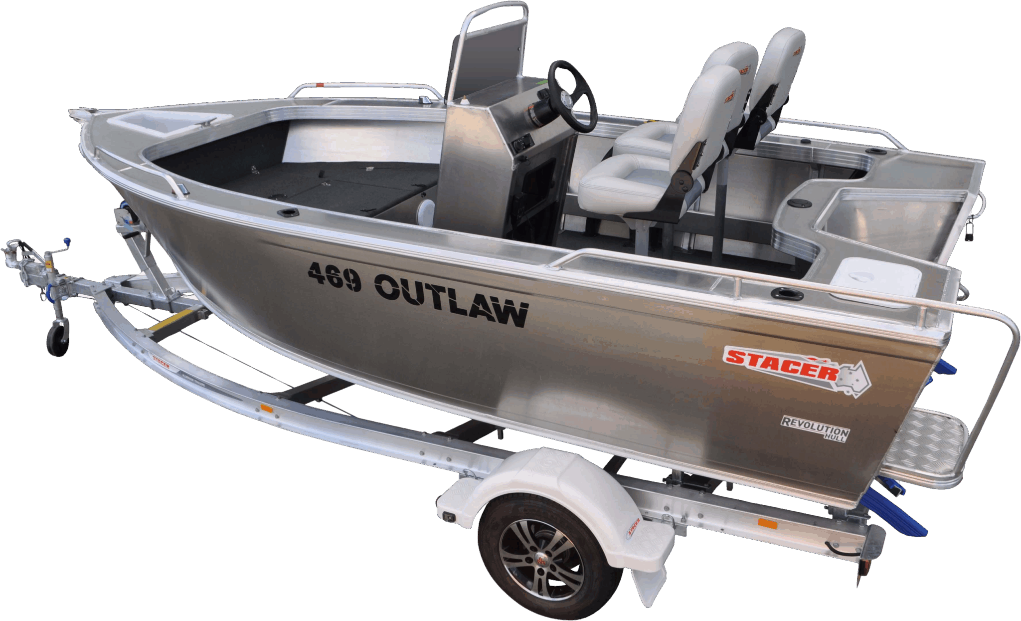 With a beam of 2.2m and featuring the Revolution Hull this Outlaw is a stable ride. With a 77L underfloor fuel tank and rated to a 75hp outboard there is plenty of power to keep you out on the water all day long.