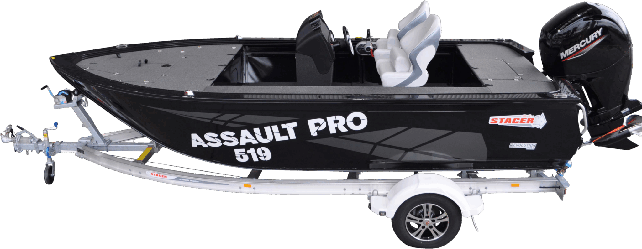The 489 Assault Pro is perfect for fishing estuaries, rivers and lakes. With a live bait tank in the rear casting platform and a 65L fuel tank you can stay out on the water all day long or until you land the perfect catch.