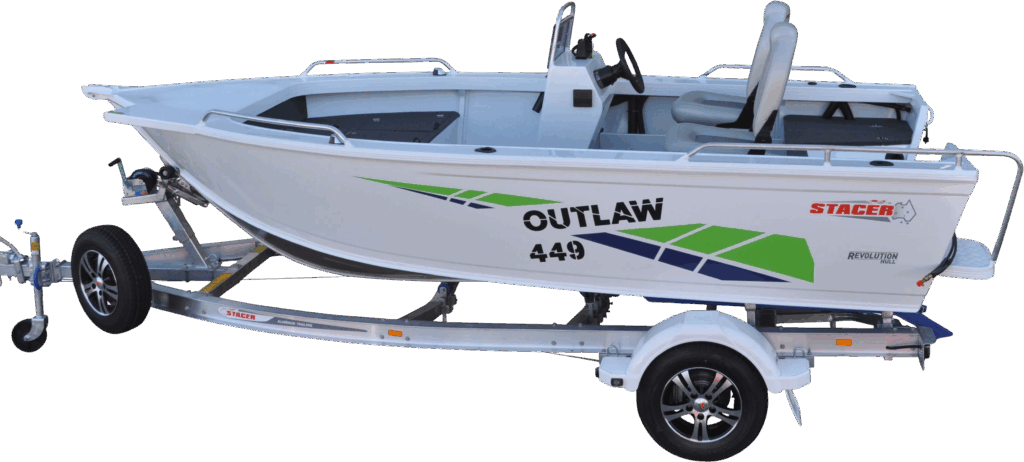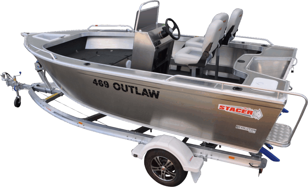One of the most wanted fishing models on the water! Stacer’s Outlaw range is available as a tiller steer, side or centre console and stand out on the water with smooth plate-look sides. Each model comes packed with nothing but the best fishing essentials – tough 3mm bottom sheets and side sheets, Revolution Hull, front and rear casting platforms and a rear live bait tank!