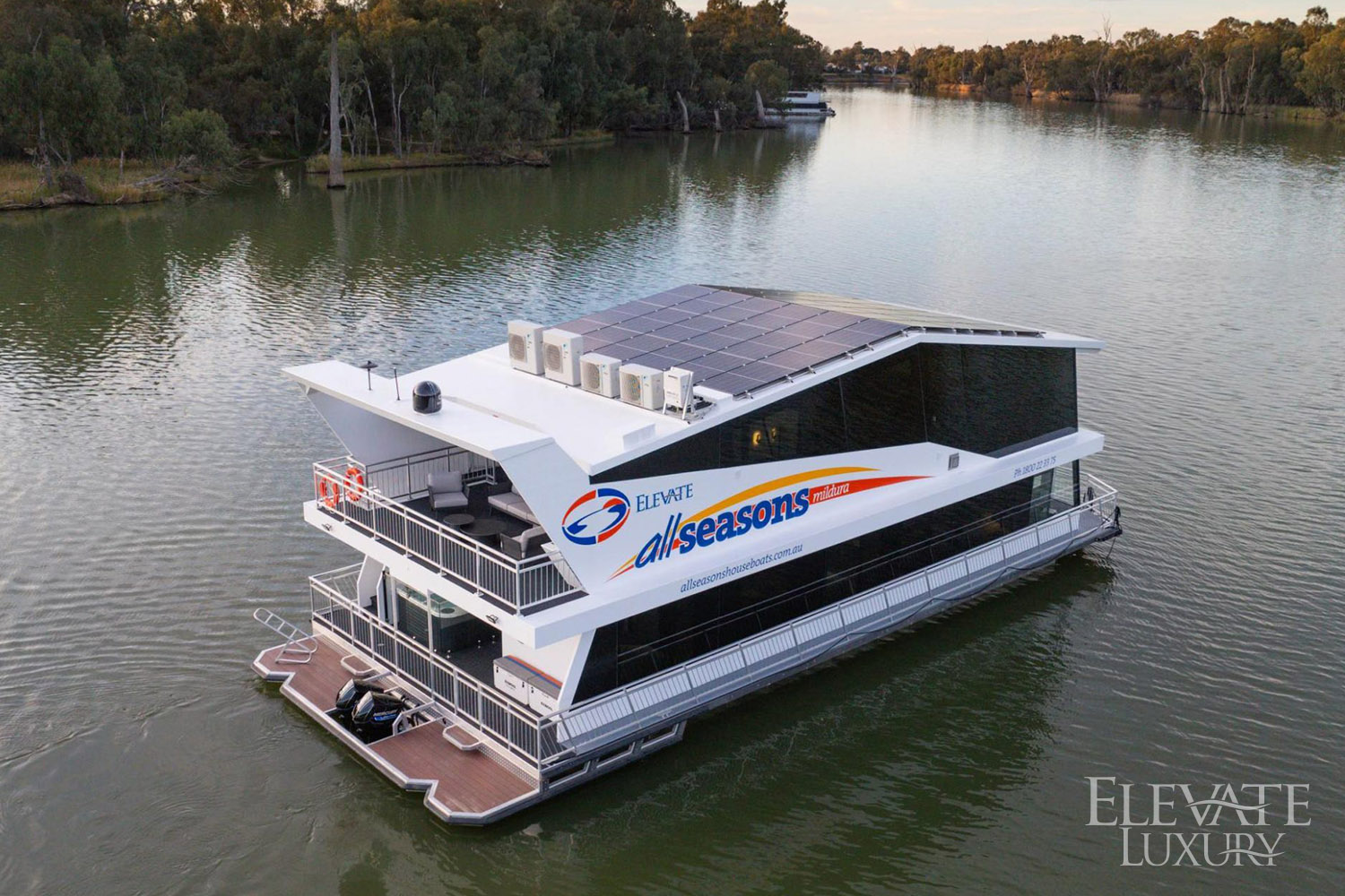 Baldwin Boats was proud to play a key role in the construction of Elevate Luxury, one of All Seasons Houseboats’ flagship vessels. Our team was responsible for major structural and technical elements, including the hull and superstructure, roof fibreglassing, and engine installation.