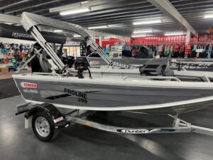 Compact, capable, and loaded with extras — this Stacer 399 Proline is the perfect freshwater fishing companion. With the hull re-rated to handle a 40HP Mercury, this lightweight and responsive package offers impressive performance whether you’re exploring creeks, chasing redfin on the lake, or cruising up the river.