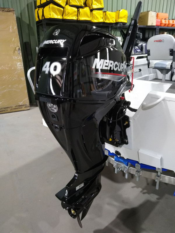 Matched with a Mercury 40hp ELHPT FourStroke Tiller and riding on a T Alloy 1098 ATM braked trailer (13” skid), this package delivers effortless performance, great fuel economy and simple handling both on and off the water.