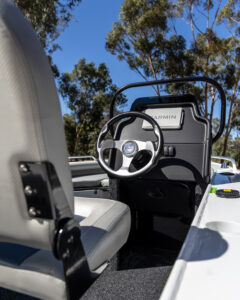 - Side console with hydraulic steering for smooth, effortless handling.