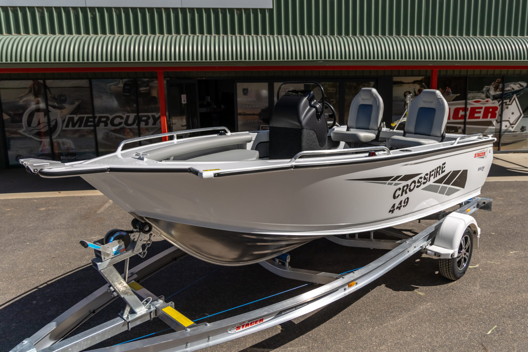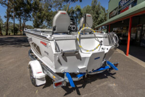 - Fully welded gunnels & side decks, extruded side decks, painted hull, bow & transom rails, console grab rail.