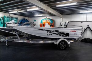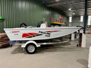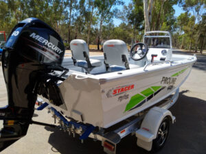 The Stacer 449 Proline Angler in side-console configuration is the perfect mix of space, stability, and premium handling. Built on Stacer’s renowned Striker Hull, it delivers excellent stability at rest, smooth performance underway, and a generous layout ideal for freshwater and estuary anglers.